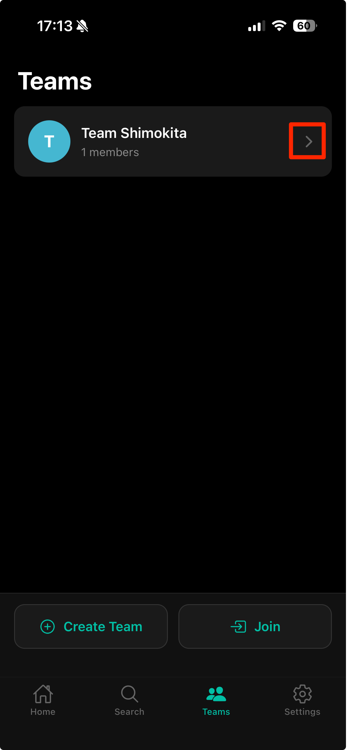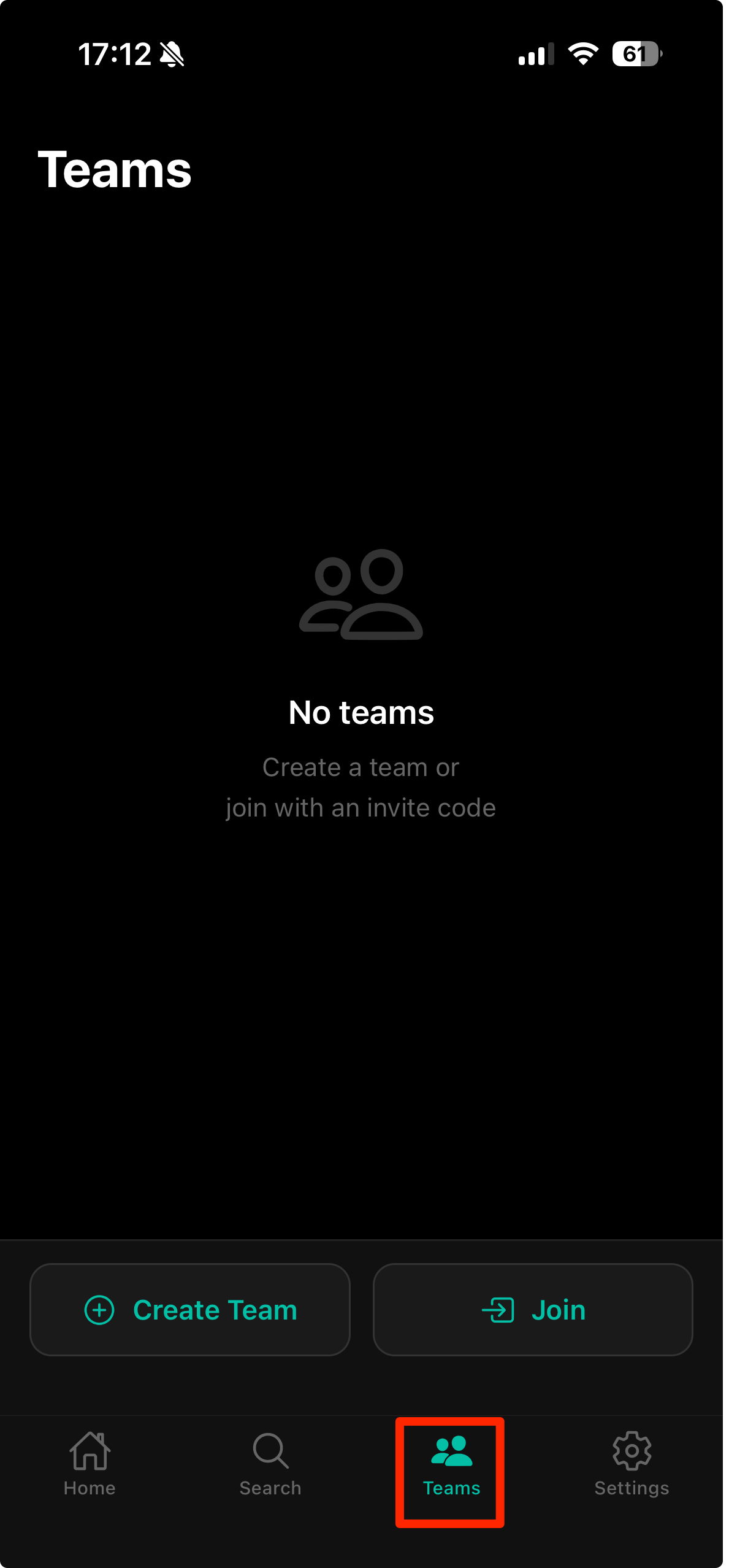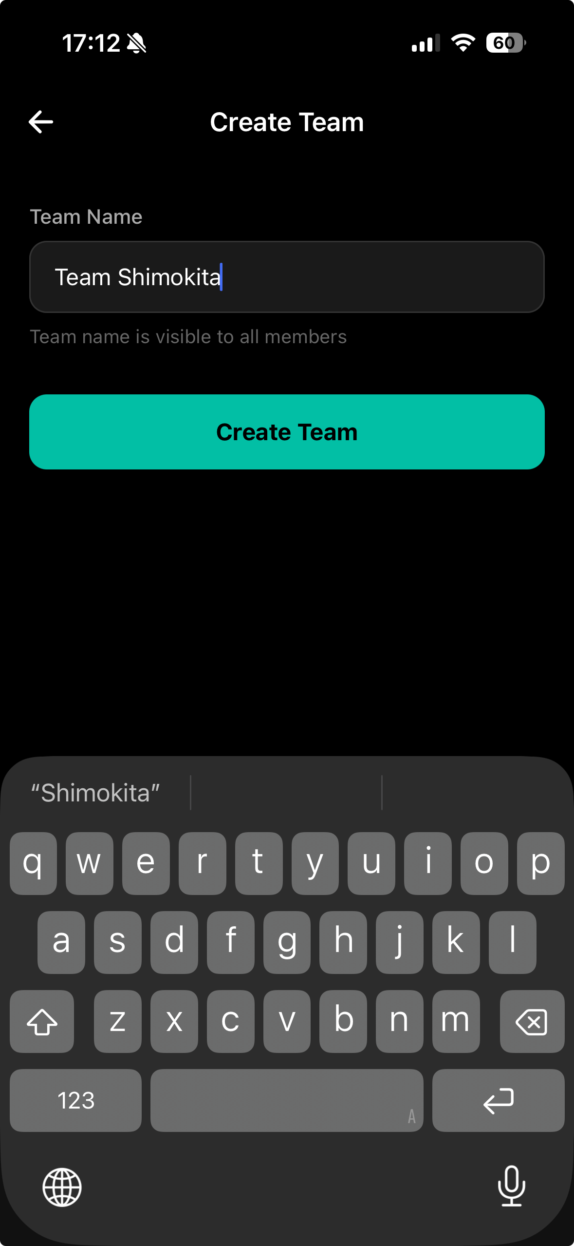 Tap 'Create Team', enter a team name, and tap 'Create Team' to create the team.