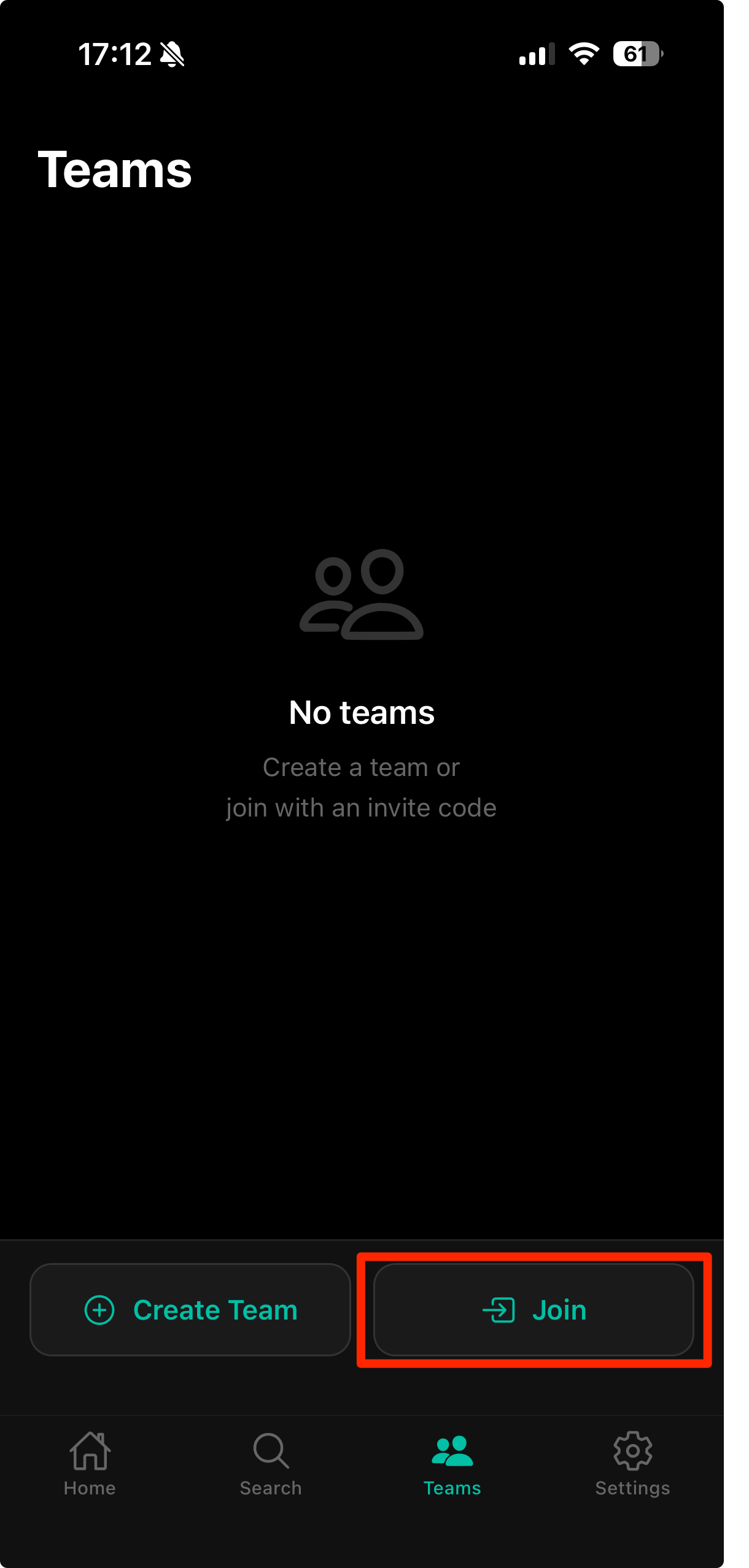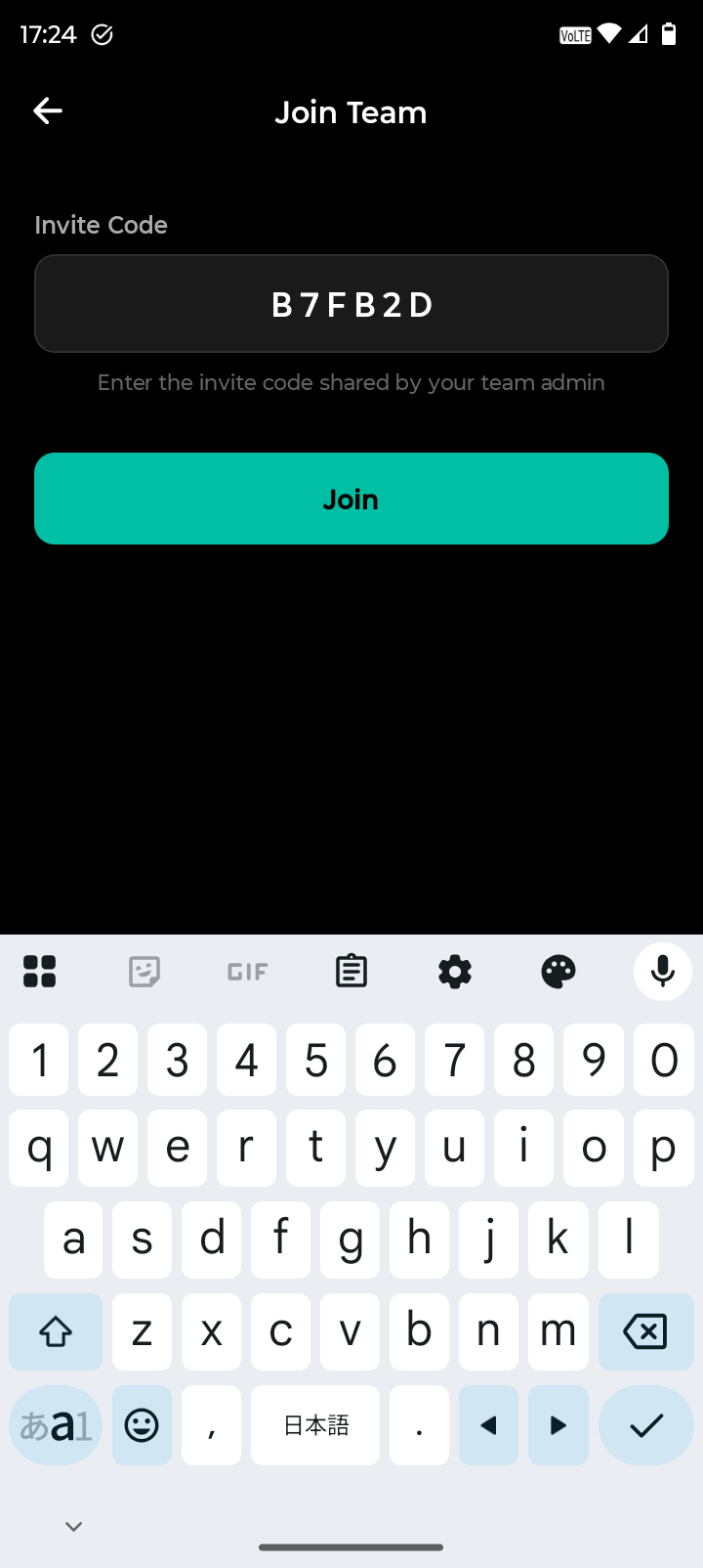 Tap 'Join', enter the invitation code from your admin, and tap 'Join'.