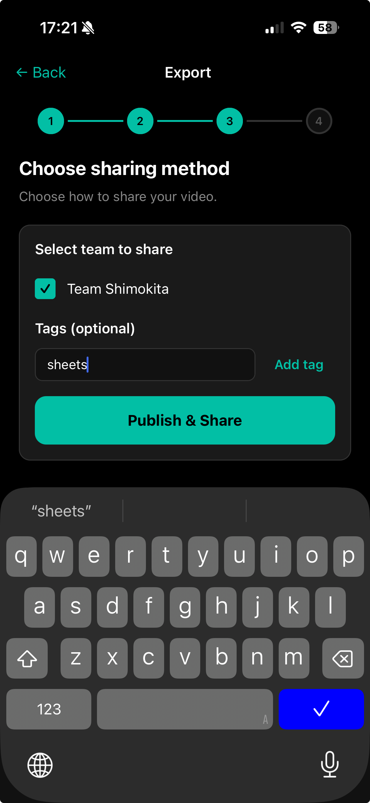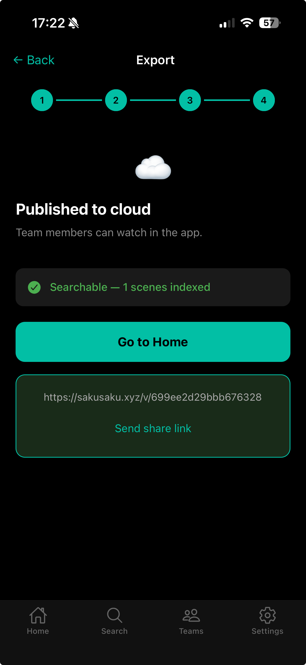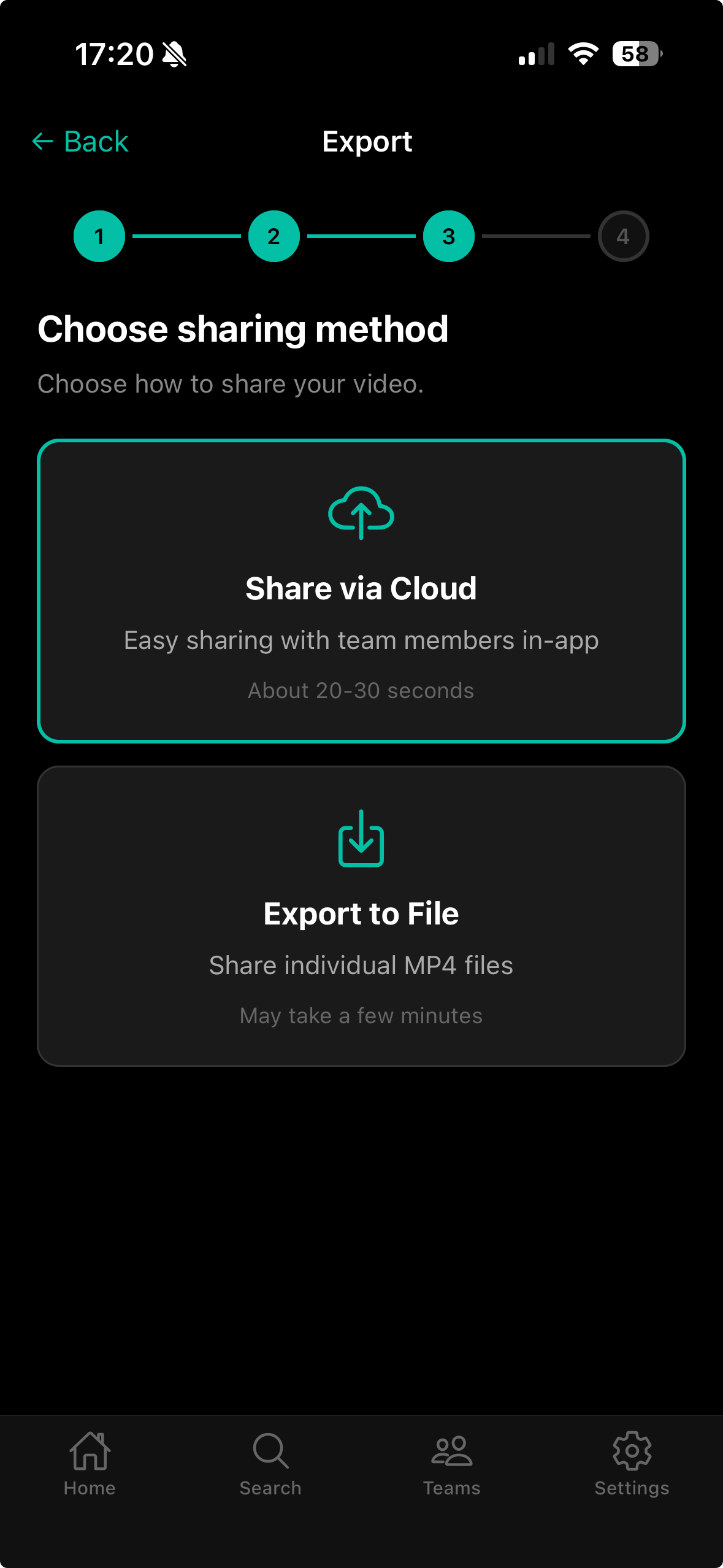 Tap 'Share to Cloud' to export in a format that can be shared with team members.