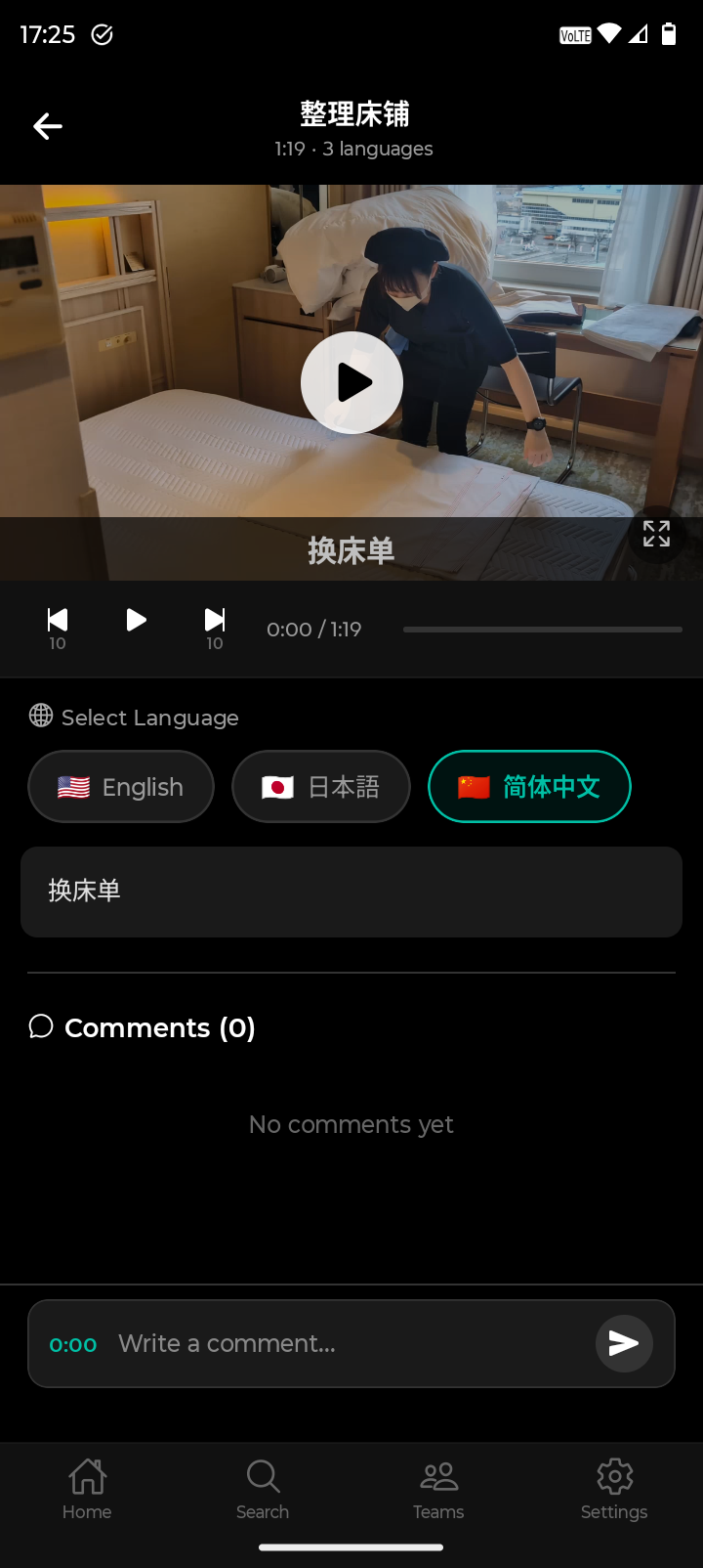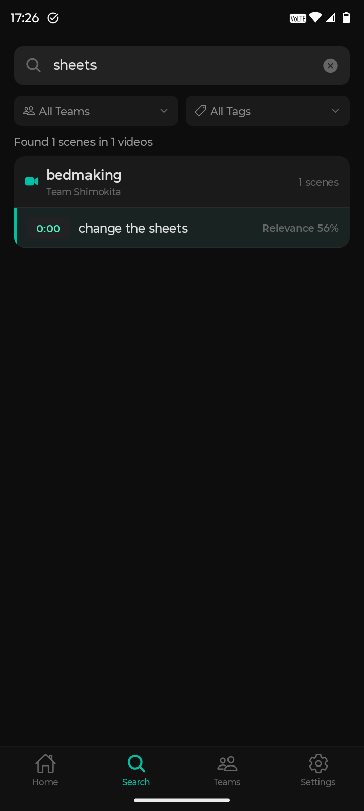 • Tap a search result to start playback from that exact scene (staff can quickly find answers while working)
